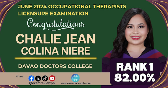 In an outstanding display of dedication and hard work, Chalie Jean Colina Niere, a student from Davao Doctors College, Inc., has emerged as the topnotcher in the recent Occupational Therapists Licensure Examination. With an impressive rating of 82.00%, Niere leads a group of 123 successful examinees from a pool of 342 participants. This remarkable achievement not only highlights her academic prowess but also brings pride to her institution and family.