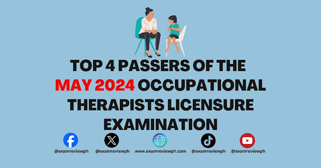 The successful examinees who garnered the four (4) highest places in the June 2024 Occupational Therapists Licensure Examination are the following: